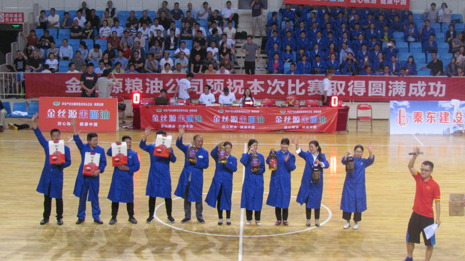 ? ? ? ? 比賽現(xiàn)場,由商洛市政府副秘書長致球賽的開場辭后,朝陽金絲源糧油公司總經(jīng)理何方女士向所有來賓致歡迎辭,誠摯的歡迎來自各方的嘉賓、運動員、裁判員朋友們以及金絲源糧油的經(jīng)銷商和供應(yīng)商們,并與他們一起品鑒了由市籃協(xié)主席全興集團董事長王志全先生贈送給兩只球隊親筆書寫的墨寶。