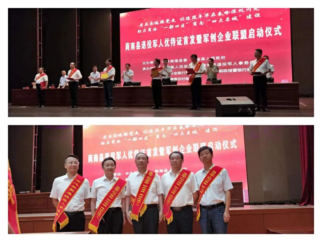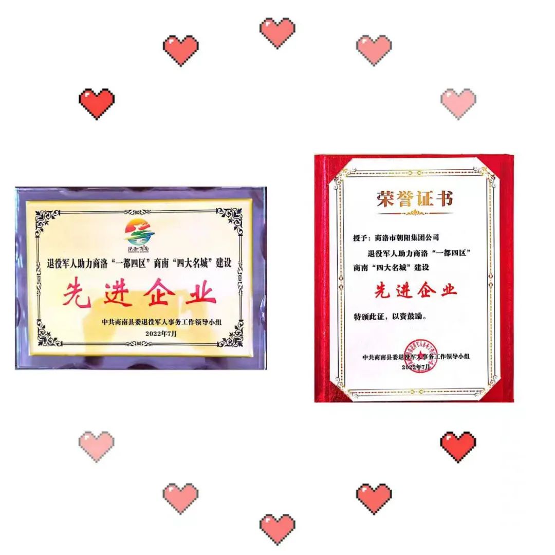 ? ? 在儀式上,中共商南縣委退役軍人事務(wù)工作領(lǐng)導(dǎo)小組表彰了軍創(chuàng)企業(yè)及先進個人,商洛市朝陽集團公司被中共商南縣委退役軍人事務(wù)局授予“退役軍人助力商洛‘一都四區(qū)’商南‘四大名城’建設(shè)先進企業(yè)” 。