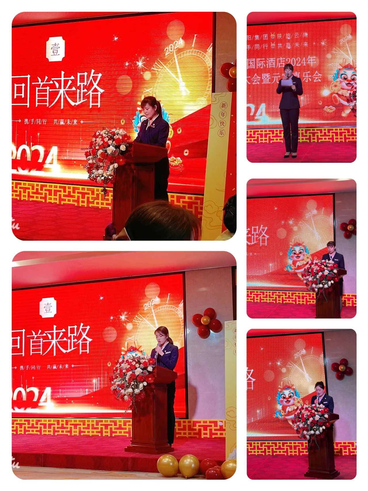 朝陽(yáng)集團(tuán)公司黨支部書記、副總、主管酒店領(lǐng)導(dǎo)何方女士做了精彩致辭:她首先肯定了酒店2023年取得的驕人成績(jī):我們?cè)诿媾R著后疫情時(shí)代消費(fèi)全面降級(jí)的大環(huán)境下,商洛酒店業(yè)全面升級(jí)開業(yè)增加下,全體員工上下一心同舟共濟(jì),在集團(tuán)公司大力支持下,在以彭總為首的經(jīng)營(yíng)班子謀劃下、在全體員工辛勤耕耘下我們?nèi)〉昧蓑溔说臉I(yè)績(jī),可喜可賀。同時(shí)她也高瞻遠(yuǎn)矚,專業(yè)、切合實(shí)際地對(duì)酒店經(jīng)營(yíng)管理提出了嚴(yán)格要求:一是在緊扣(提服務(wù)、練內(nèi)功、重定位、控成本、重安全)基礎(chǔ)上進(jìn)一步從實(shí)際出發(fā)提硬件、提宣傳、提管理、提產(chǎn)品、抓落實(shí)緊扣目標(biāo)任務(wù)不放松。二是多渠道營(yíng)銷,積極發(fā)展各類客戶群體。三是加強(qiáng)學(xué)習(xí),謙虛謹(jǐn)慎對(duì)待各項(xiàng)工作。四是緊跟市場(chǎng)導(dǎo)向,提前謀劃,主動(dòng)出擊、調(diào)整酒店產(chǎn)品順應(yīng)需求為確保目標(biāo)任務(wù)完成做出行動(dòng)。為酒店在康養(yǎng)之都建設(shè)中貢獻(xiàn)我們的力量,打出我們的品牌提升整個(gè)集團(tuán)形象。